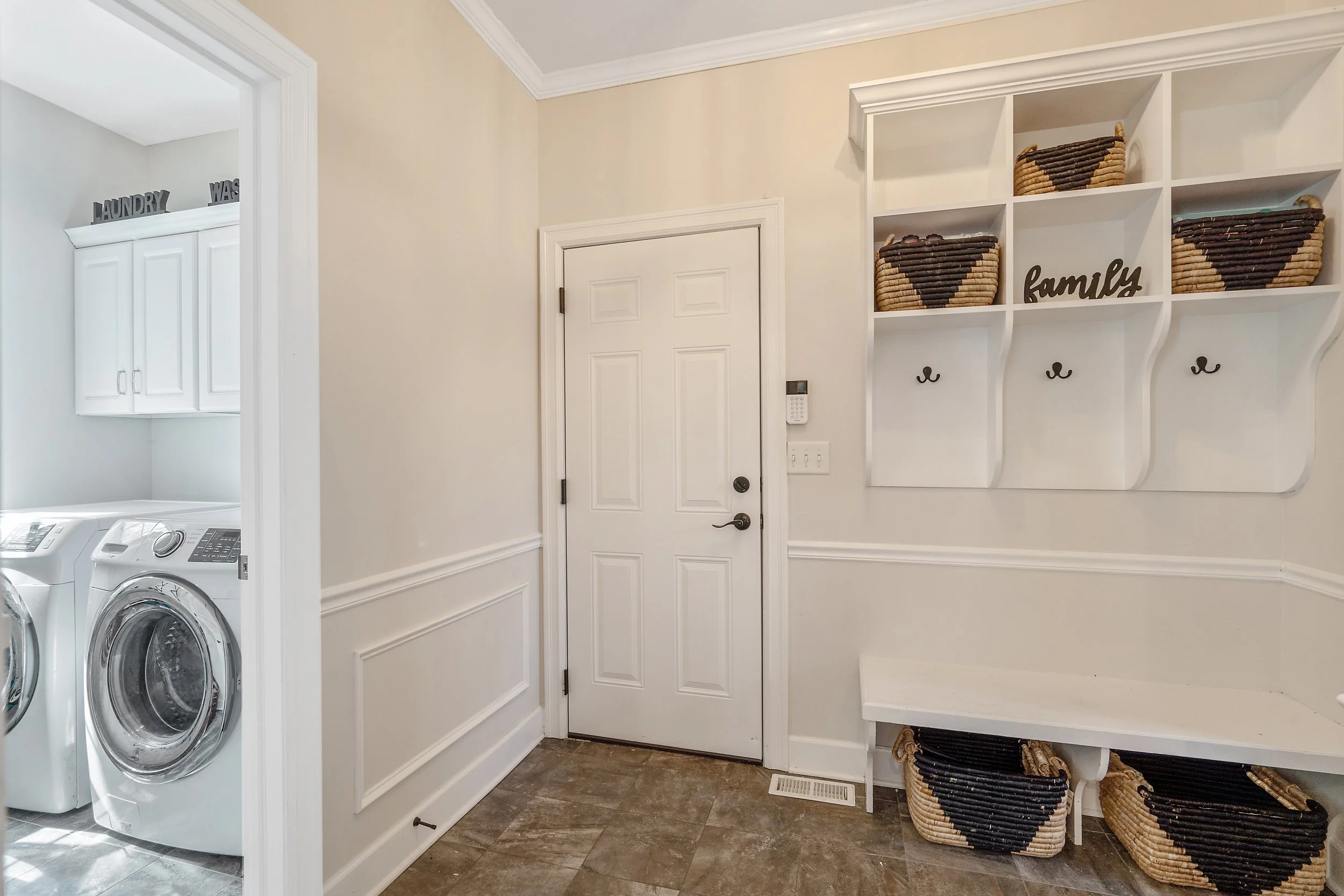 • Walk-in pantry, mudroom + first floor laundry
